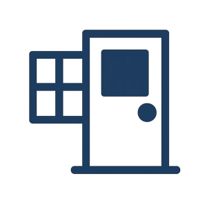 Door/window schedules with frames, glazing and hardware sets; fire ratings and counts validated.